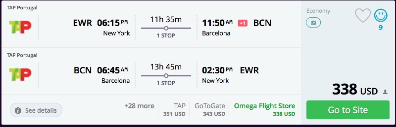 New York (EWR) to Barcelona or Madrid, Spain for $338 R/T [TAP Portugal]