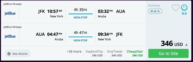 Amazing deal: New York to Aruba (Caribbean) flights roundtrip under $346.