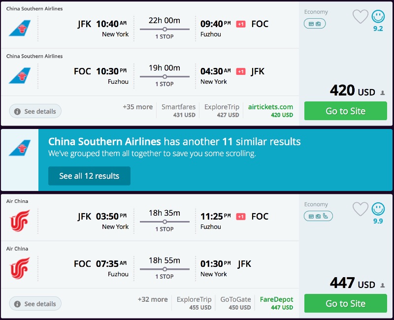 Amazing deal: New York to Fuzhou, China flight roundtrip as low as $420.