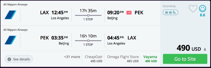 Los Angeles to Beijing or Shanghai, China for $490 R/T [ANA]