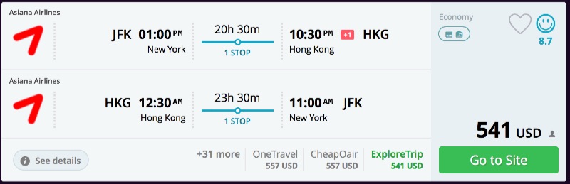 Amazing deal: New York to Hong Kong flights roundtrip as low as $541.