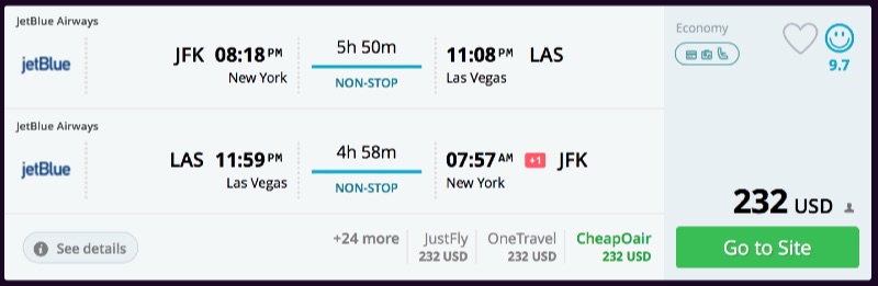 Amazing deal: New York to Las Vegas and vice versa flights roundtrip as low as $232 and vice versa.
