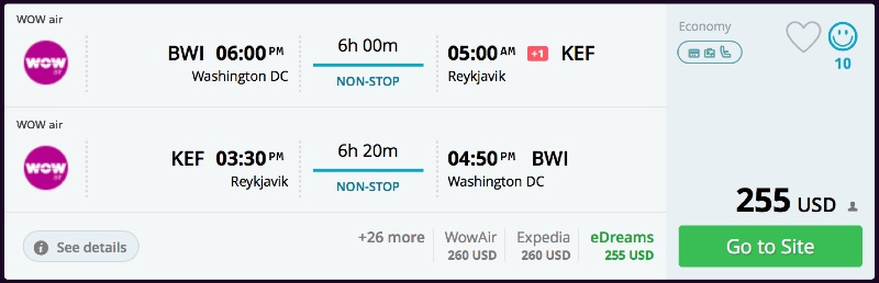Baltimore to Reykjavik, Iceland for $255 R/T nonstop [WOW]