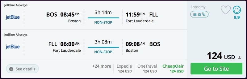 Amazing deal: Boston to Fort Lauderdale and vice versa flights roundtrip as low as $124.