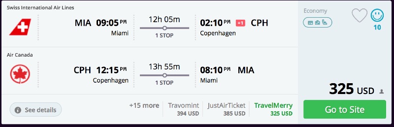 Amazing deal: Miami to Copenhagen, Denmark flight roundtrip as low as $325.