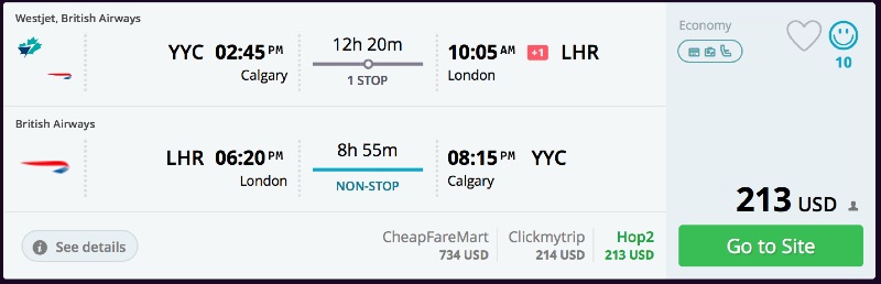 Amazing deal: Calgary, Canada to London, UK flight roundtrip as low as $213.