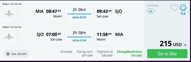 Amazing deal: Miami to San Jose, Costa Rica flight roundtrip as low as $215.