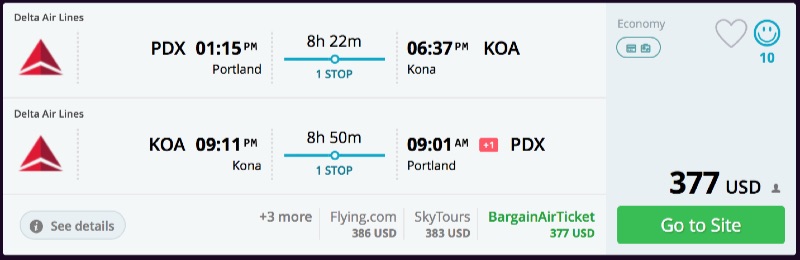 Portland to Hawaii: Kona from $377 R/T [Delta]