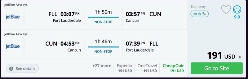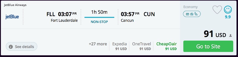 Fort Lauderdale to Cancun, Mexico for $91 O/W ($191 R/T) nonstop [JetBlue]