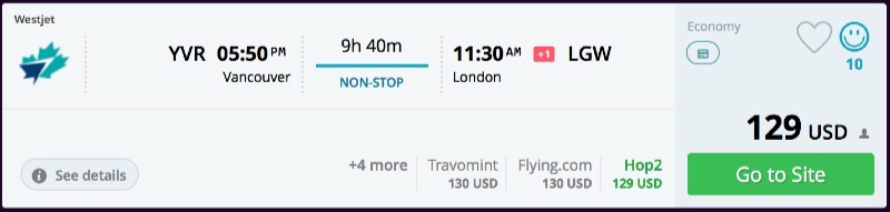 Amazing deal: Vancouver, Canada to London, UK flight roundtrip as low as $129USD.