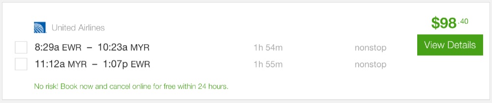 Amazing deal: Newark to Myrtle Beach, SC and vice versa flight roundtrip as low as $98.