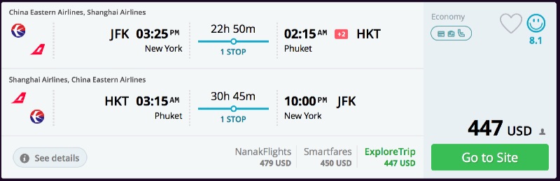 Amazing deal: New York to Phuket, Thailand flight roundtrip as low as $447.