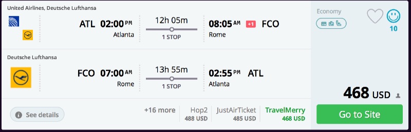 Amazing deal: Atlanta to Italy: Milan, Rome or Venice flight roundtrip as low as $420.