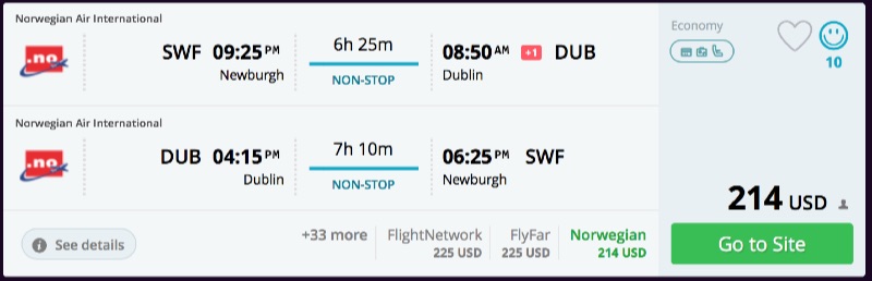 Amazing deal: Newburgh, NY to Ireland or Scotland flight roundtrip as low as $214.