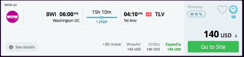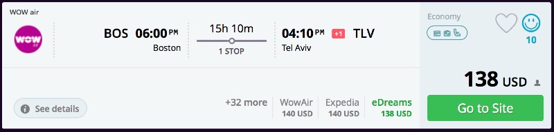 Boston or Baltimore to Tel Aviv, Israel from $256 R/T [WOW]