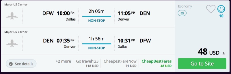 Amazing deal: Dallas to Denver and vice versa flights roundtrip as low as $48.