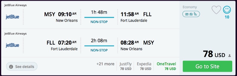 Amazing deal: New Orleans to Fort Lauderdale and vice versa flights roundtrip as low as $78.