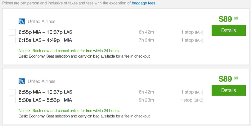 Amazing deal: Miami to Las Vegas and vice versa flights roundtrip under $89.