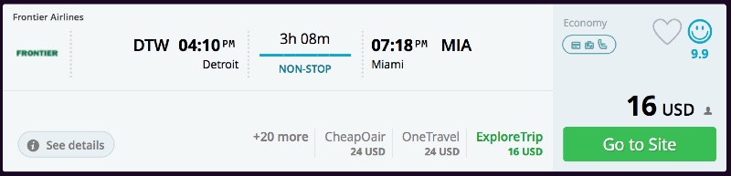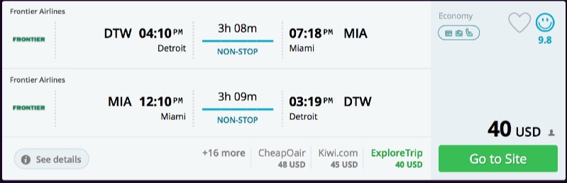 Amazing deal: Detroit to Miami and vice versa flight roundtrip as low as $40.