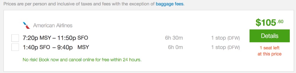 Amazing deal: New Orleans to San Francisco and vice versa flight, roundtrip as low as $105.