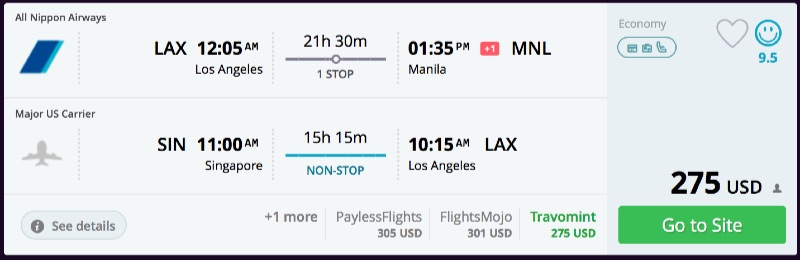 Amazing deal: Los Angeles to Manila/Singapore and back to LAX flight roundtrip as low as $275.