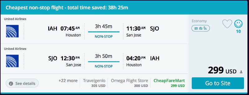 Amazing deal: Houston to San Jose, Costa Rica flight roundtrip as low as $299.