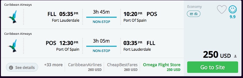 Amazing deal: New York or Fort Lauderdale to Trinidad and Tobago flights roundtrip as low as $250.
