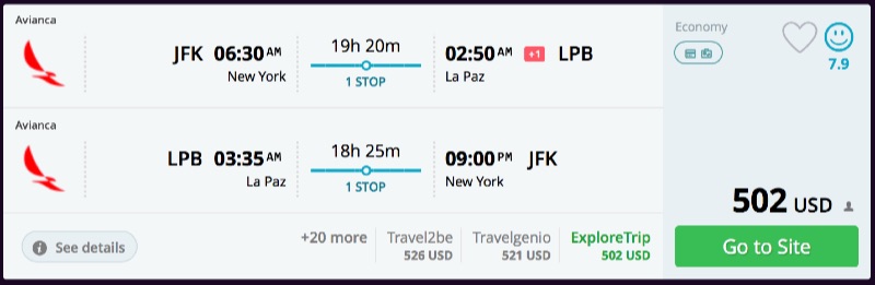 Amazing deal: New York to Bolivia: La Paz or Santa Cruz flight roundtrip as low as $465.