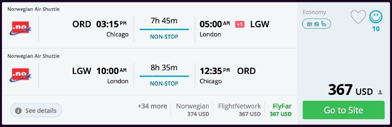 Chicago to London, UK for $367 R/T nonstop [Norwegian]