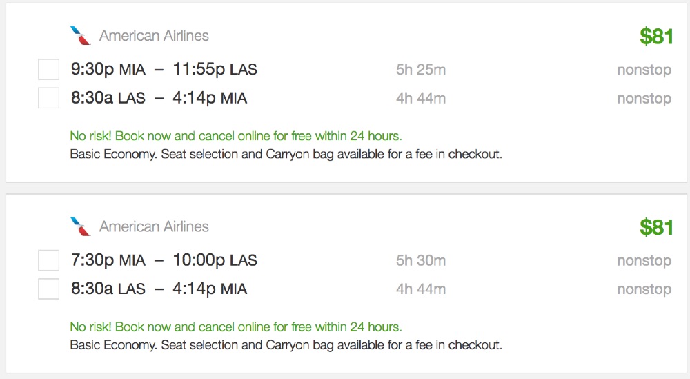 Amazing deal: Miami to Las Vegas and vice versa flights roundtrip under $81.