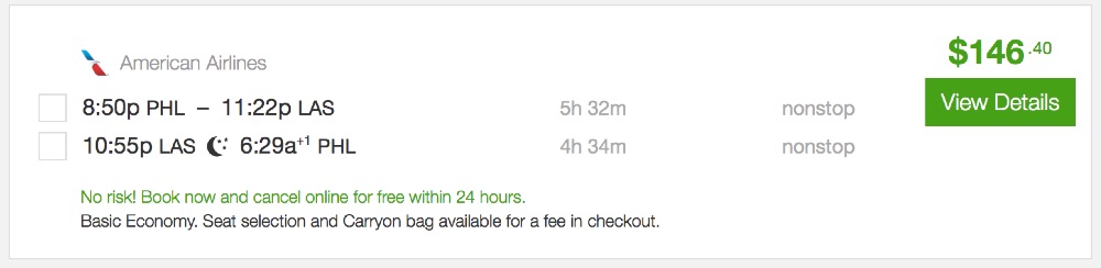 Amazing deal: Philadelphia to Las Vegas and vice versa for as low as $146 roundtrip.