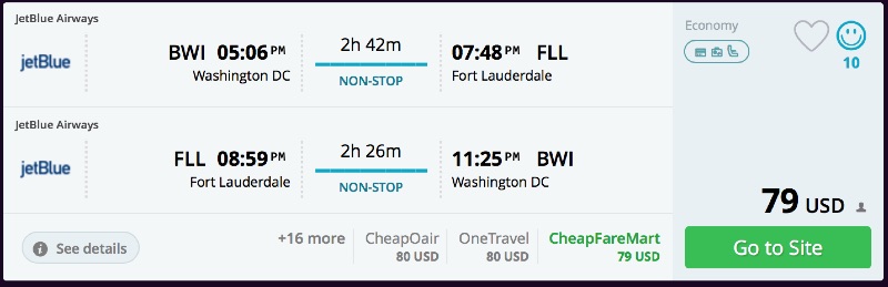 Amazing deal: PHL, CLT, BWI to Fort Lauderdale from $62 R/T and LGA, DTW, MSY, ORD, ATL, IAH to Miami from $52 R/T.
