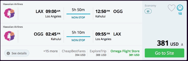 Amazing deal: Los Angeles to Hawaii: Honolulu or Kahului flights roundtrip as low as $380.