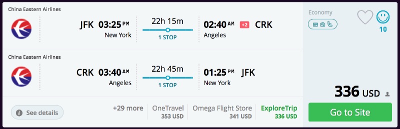 Crazy Low! New York to Philippines (Angeles City) from $336 R/T [China Eastern]