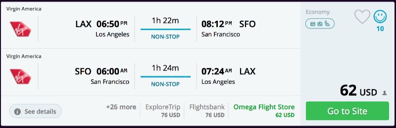 Amazing deal: Los Angeles to San Francisco and vice versa flights roundtrip as low as $62.
