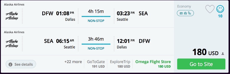 Amazing deal: Dallas to Seattle and vice versa flights roundtrip as low as $180.