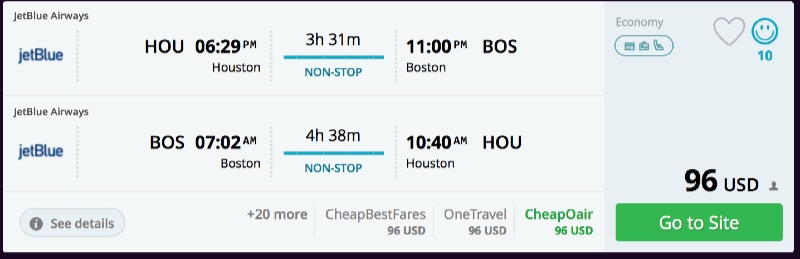 Amazing deal: Houston to Boston and vice versa flight, roundtrip as low as $96.