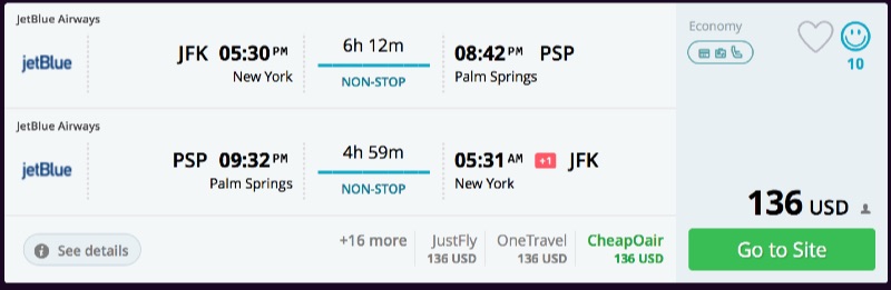 Amazing deal: New York to Palm Springs, California flights roundtrip as low as $136.