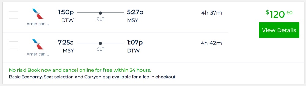 Basic Economy fare (for New Orleans) restrictions apply, including:
