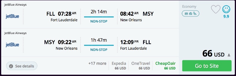 Amazing deal: Fort Lauderdale to New Orleans and vice versa flight, roundtrip as low as $66.