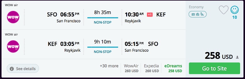 Amazing deal: New York or San Francisco to Reykjavik, Iceland flights roundtrip as low as $258.