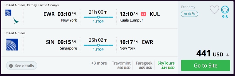 Amazing deal: Newark to Kuala Lumpur/Singapore and back to EWR flight roundtrip as low as $441.