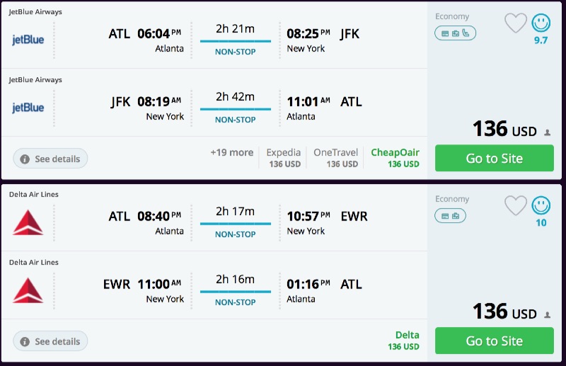 Amazing deal: Atlanta to New York and vice versa flight roundtrip as low as $136.