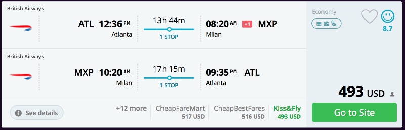 Amazing deal: Atlanta, Boston or Los Angeles to Italy: Milan flight roundtrip as low as $447.