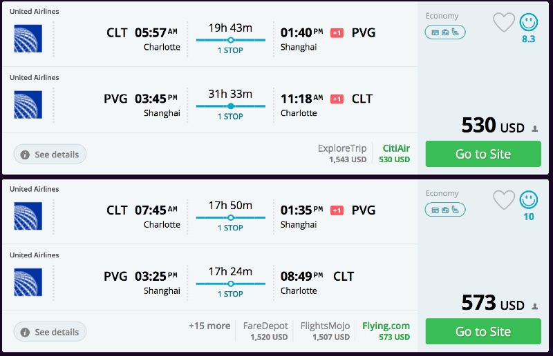 Charlotte, Orlando or Portland to Shanghai, China from $467 R/T [United]