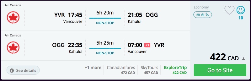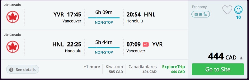 Amazing deal: Vancouver, CA to Hawaii flights roundtrip as low as 422CAD.