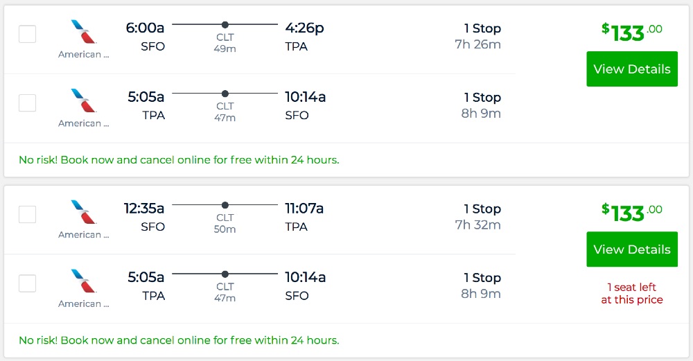 Amazing deal: San Francisco to Tampa, Florida and vice versa flights roundtrip as low as $133.