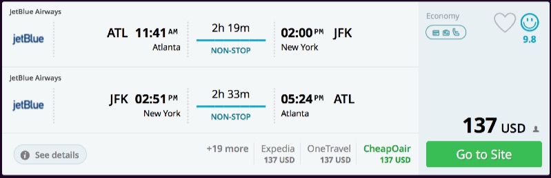 Amazing deal: Atlanta to New York and vice versa flight roundtrip as low as $137.