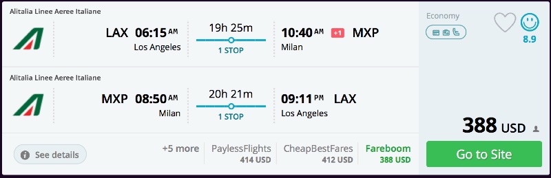 Amazing deal: Los Angeles to Italy: Milan flight roundtrip as low as $388.