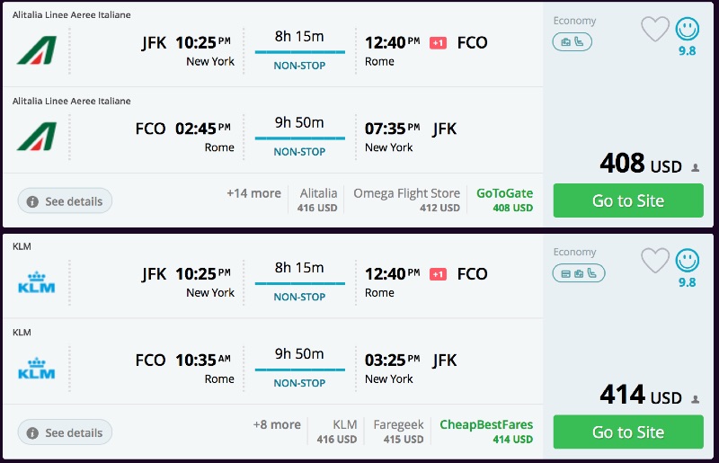 Some dates are higher — but no more than extra $500 for R/T.